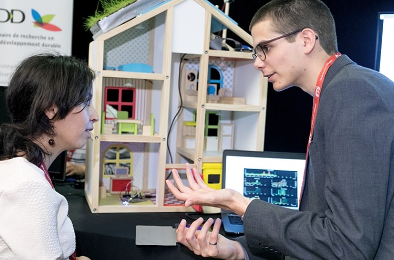 L’ensemble des dispositifs « communiquent » entre eux (détecteur de présence, chauffage, lumière, etc.) sans intervention humaine. « C’est ce qu’on appelle l’Internet des objets », explique Antoine Langevin, étudiant à la maîtrise au laboratoire Synchromédia de l’ÉTS d’où est issu ce projet dont les objectifs dépassent la maison connectée. En effet, les appartements des résidences sont reliés entre eux grâce à leur connexion au même réseau d’Internet des objets, un peu comme le seraient les maisons et les commerces d’une ville intelligente.