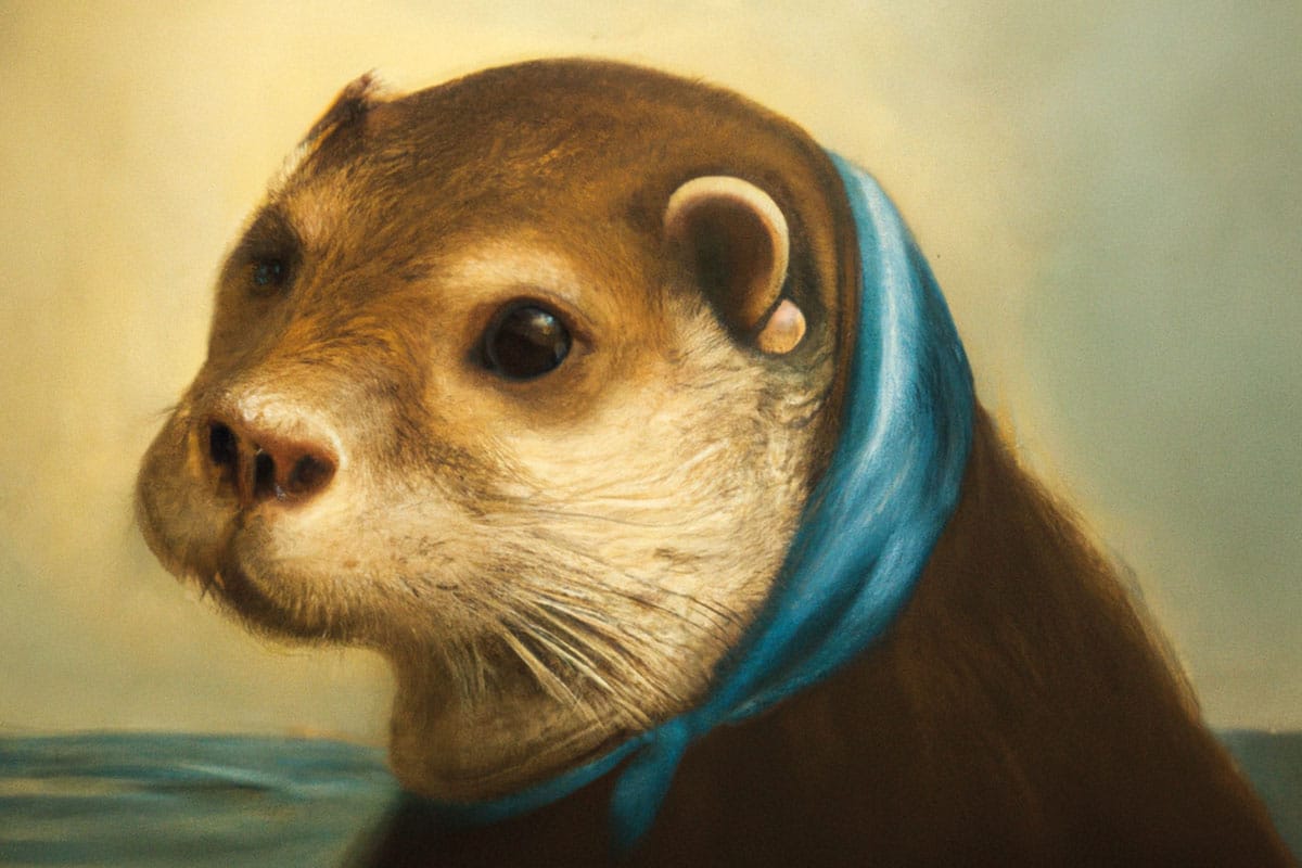 Le mandat était ici de réaliser une loutre de mer dans le même style que La jeune fille à la perle, du peintre Johannes Vermeer. DALL-E a signé son œuvre : les blocs colorés en bas à droite. Image: DALL-E/OPENAI